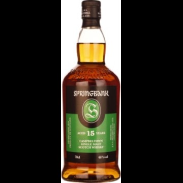 Springbank 15 years Single Malt is donker, onheilspellend en kan het best na een goede maaltijd of in combinatie met een sigaar genuttigd worden. In de neus suiker, donkere chocolade, amandelen, toffee en eiken. In de mond rozijnen, donkere chocolade, vijgen, marsepein, noten en vanille. In de afdronk eiken en sherry met hinten van leer.